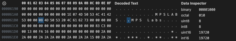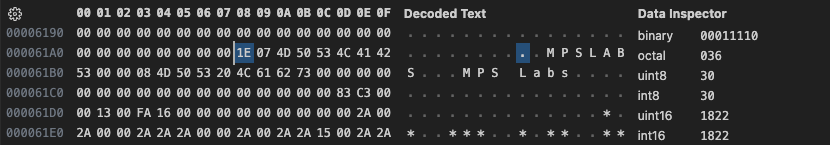 The strings appear to be length prefixed. Looking at the other records seems to confirm this. This suggests that MPS Show was written in Pascal though I did not see any compiler, runtime, or linker information in any of the data segments, so it must have been scrubbed out. This information isn’t likely to help us much here, only that any strings will be length prefixed. Next looking at the beginning of the following record we see.