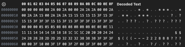 The first thing I noticed is that the data appears to follow a very regular pattern. Despite noticing the pattern, the obvious fact that this is the most basic form of RLE encoding eluded me for longer than I care to admit. With that said, this is indeed very basic RLE encoding, where every entry is 16 bits, the first 8 bits are the count, and the 2nd 8 bits are the value. So all that’s left is to code it up, and render an image.