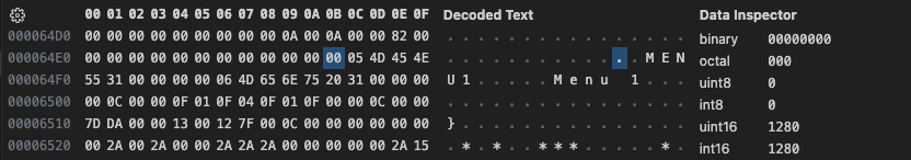 1: MENU1 - Menu 1 ofs:00da7d len:201359122 mode:13h [calc len: 32530 ]